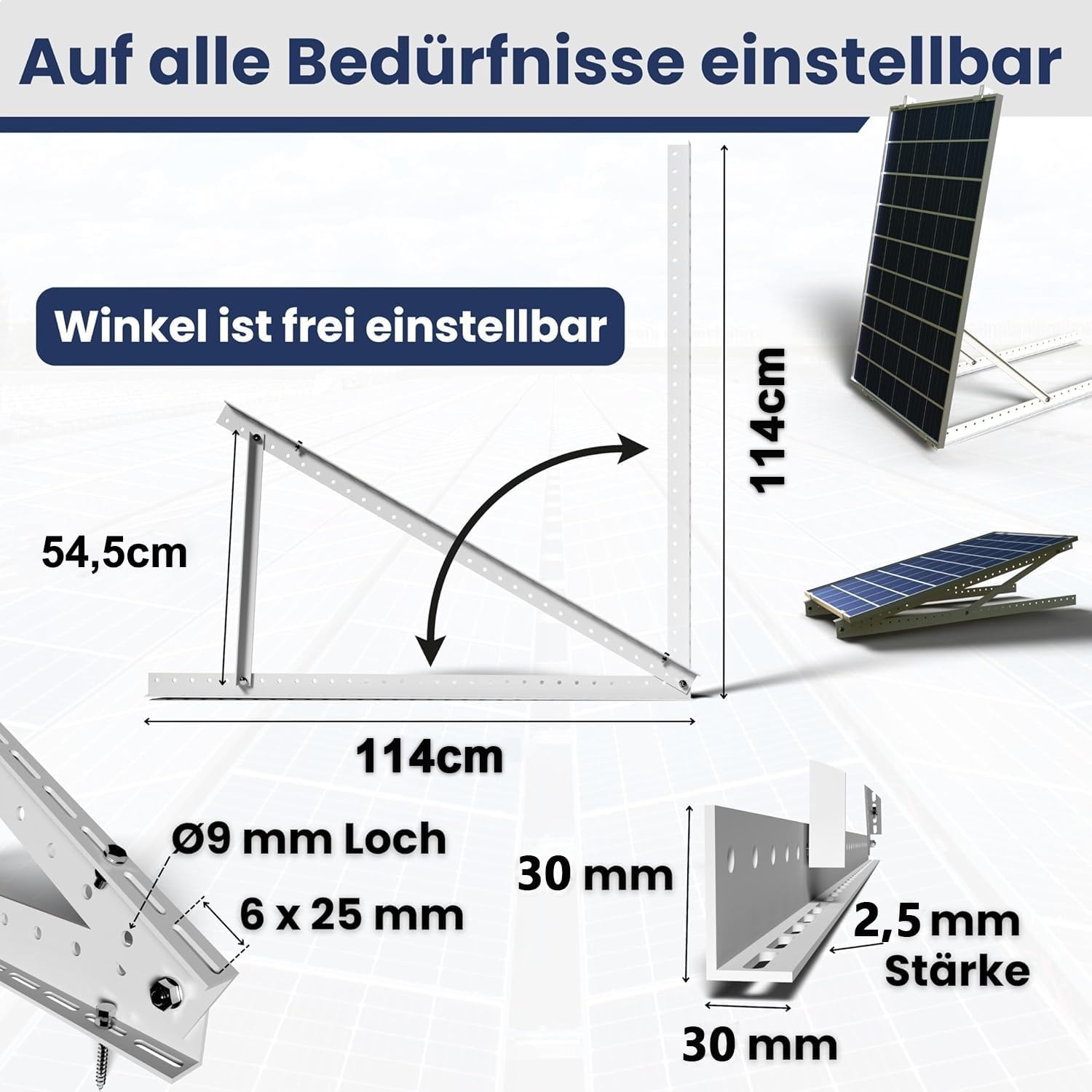 - 【Flexible et adaptable – tous les scénarios à portée de main】Angle réglable (0-90°) s’adapte parfaitement aux rayons du soleil de différentes largeurs. Qu’il s’agisse de toits plats, de toits inclinés, de terrains ouverts ou de serres, les terrains complexes sont nivelés et fixés avec précision. Les panneaux solaires restent toujours « face au soleil » – Augmentez la production d’électricité de 15 %